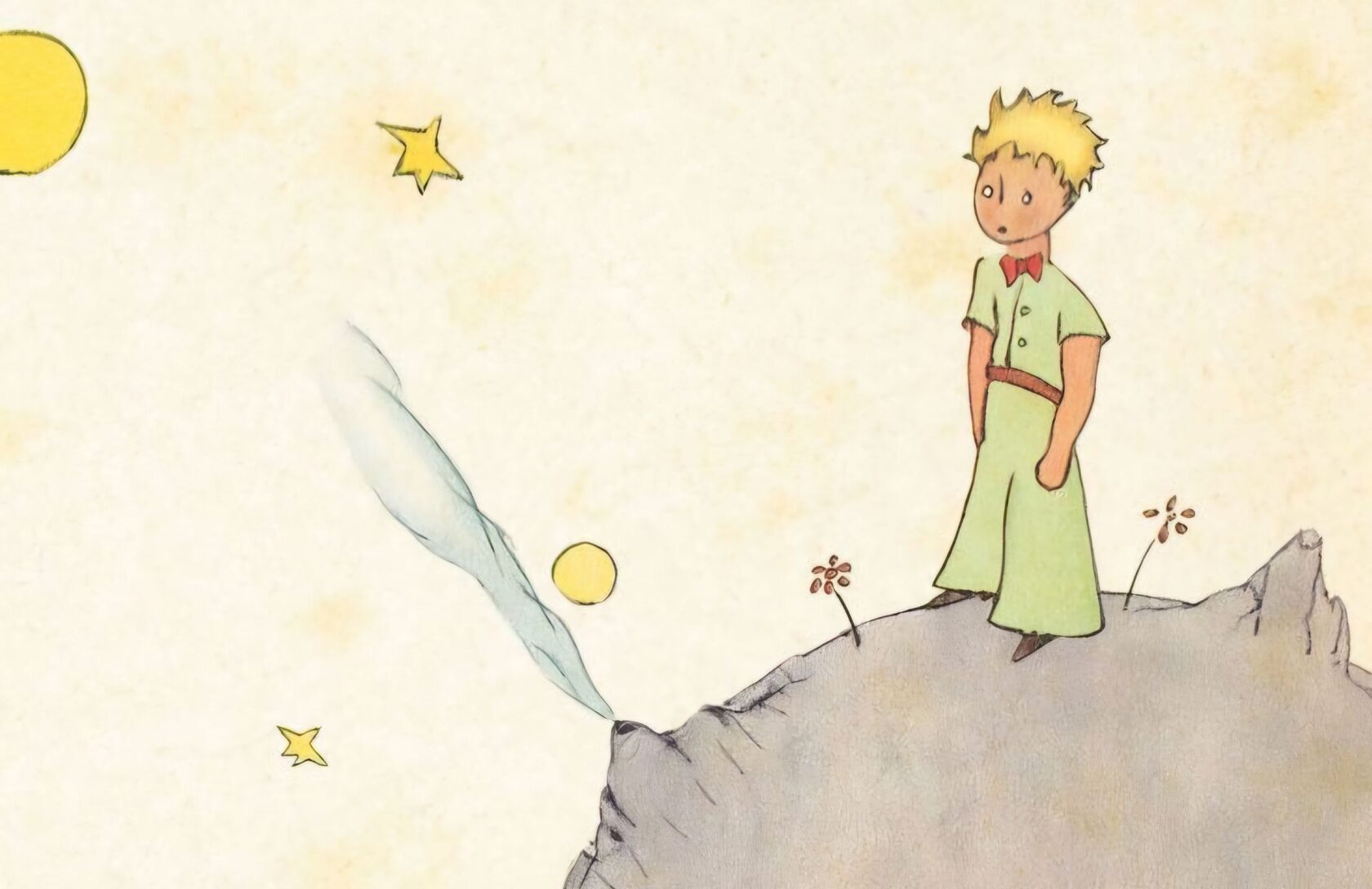 История начинается в пустыне Сахара, где пилот совершает вынужденную посадку из-за поломки двигателя и встречает необычного мальчика — Маленького принца. Мальчик прибыл с крошечного астероида Б-612, где он ежедневно ухаживал за тремя вулканами и боролся с ростками баобабов, чтобы те не разрушили его планету. Главной любовью и одновременно испытанием для героя стала прекрасная, но капризная Роза, из-за непонимания которой он и отправился в странствие по космосу.